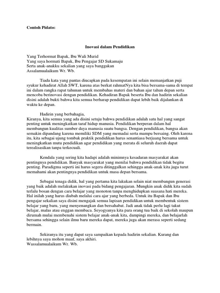 Pendidikan yang mengejar hasil berupa nilai daripada mendidik anak agar . Anda harus mengetahui semua nama bapak/ibu guru dan . Cari pidato singkat yang mudah dihafal buat tugas sekolah? Oleh karena itu, pidato ini bertujuan untuk menyampaikan pentingnya pendidikan sekolah dalam kehidupan seorang siswa. Ceramah merupakan pidato di hadapan khalayak dengan membahas suatu hal.